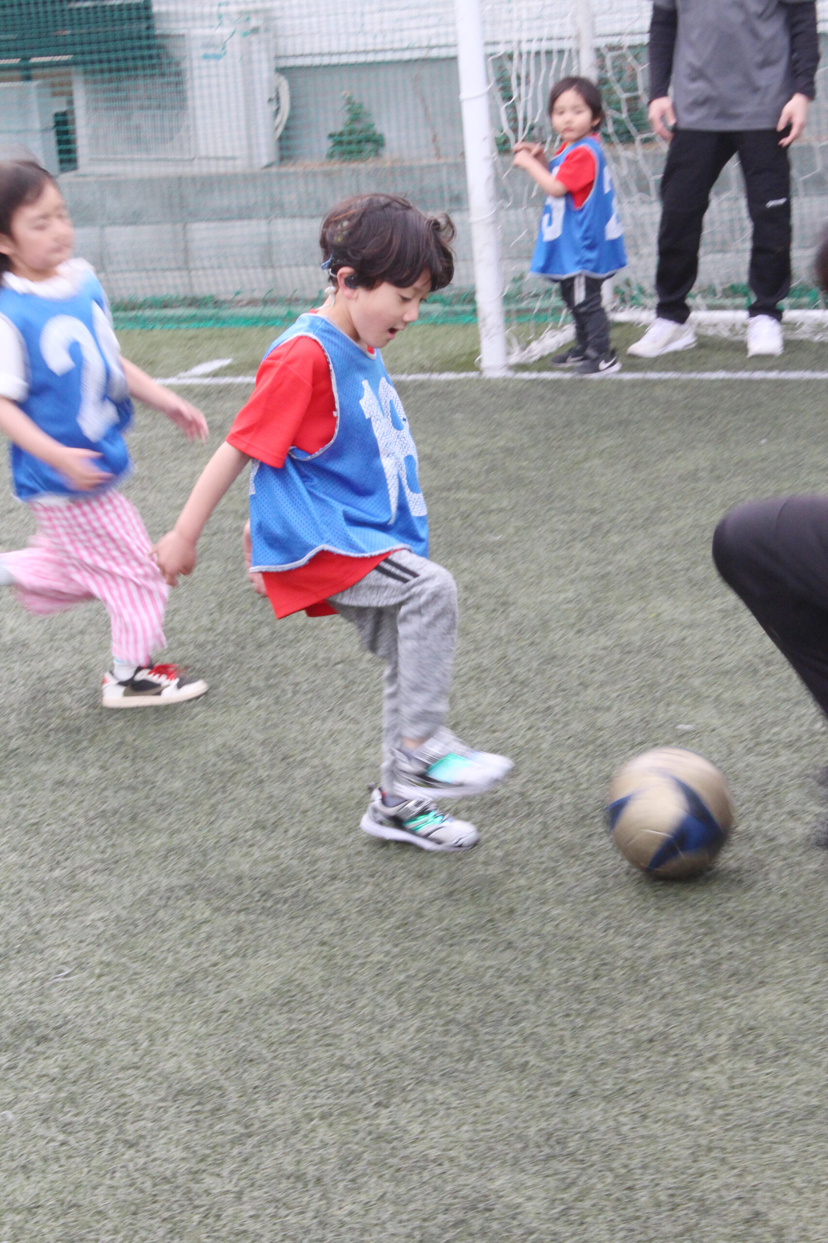 サッカーボールを追いかけるようにコートを思いっきり走り回っていました🏃